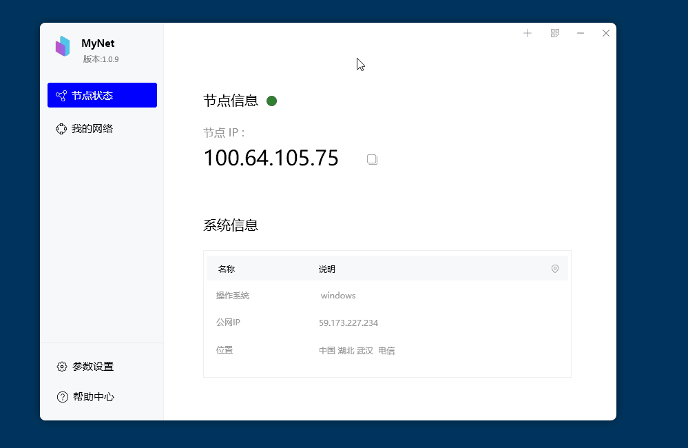 点击 “授权登录” 后,节点绑定成功,可以关闭微信小程序。 MyNet 出现类似如下界面: